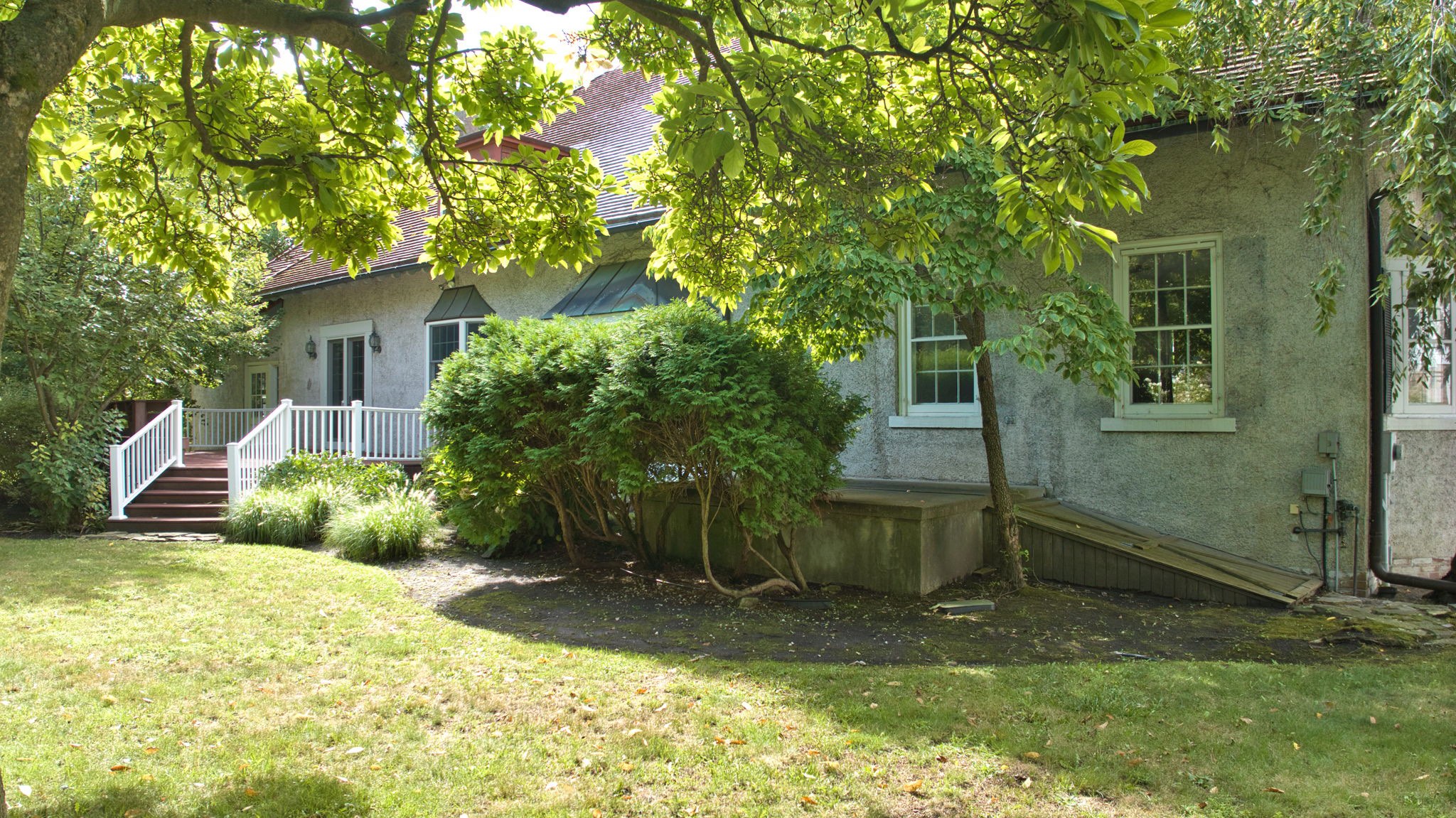 Formerly carriage bays and horse stalls, the oversized attached garage now offers modern storage and practicality while maintaining its original charm. A tranquil courtyard enclosed by a privacy wall features a charming working well hand pump, providing a peaceful outdoor retreat.